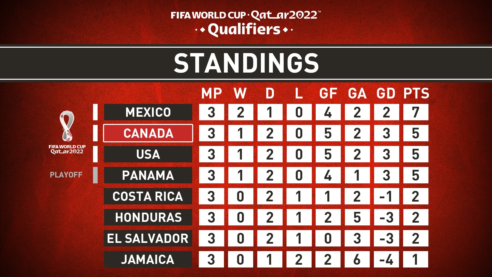 World cup concacaf qualification table. Detailed info include Goals Scored Top Scorers Over 25 FTS BTTS Corners Clean Sheets. Keep up to date with the latest CONMEBOL Qualification score CONMEBOL Qualification results CONMEBOL Qualification standings and CONMEBOL Qualification schedule. CONCACAF World Cup qualifying will grant three automatic berths to the Qatar 2022 World Cup.