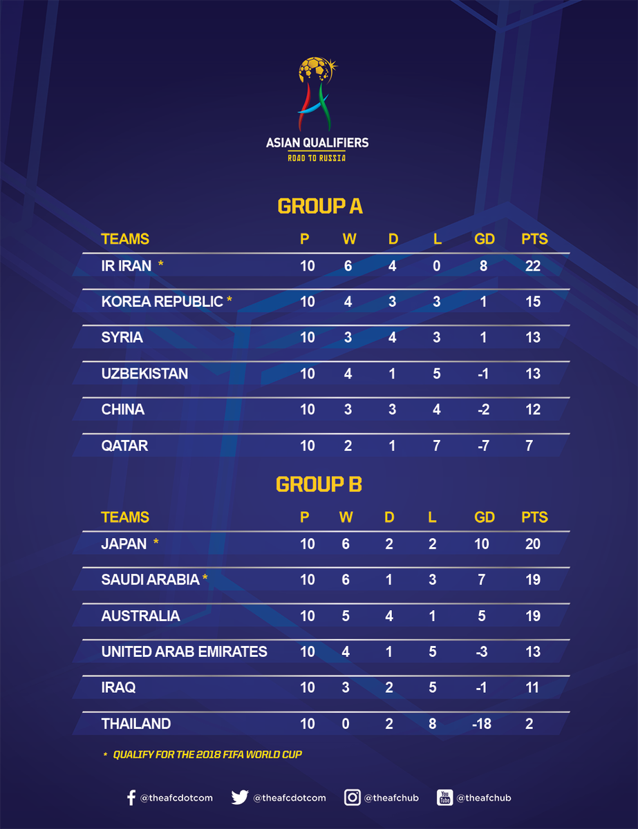 Afc On Twitter Final Standings Qualified For The Fifaworldcup Qualified For The Asian Playoff Wcq2018 Roadtorussia Https T Co Tg4lvleqqs Twitter
